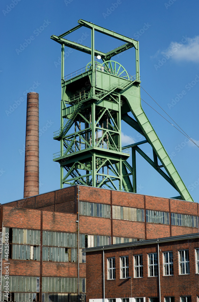 Förderturm mit Schornstein Grube Reden Saarland StockFoto Adobe Stock